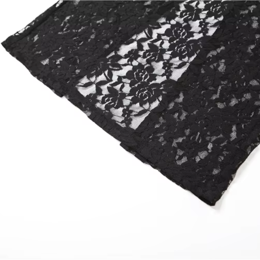 Femme Fatality Maxi Dress – Schwarzes Spitzen-Maxikleid mit transparenter Silhouette