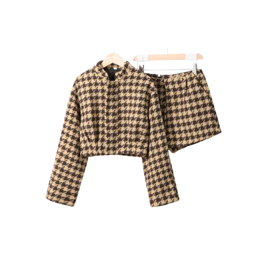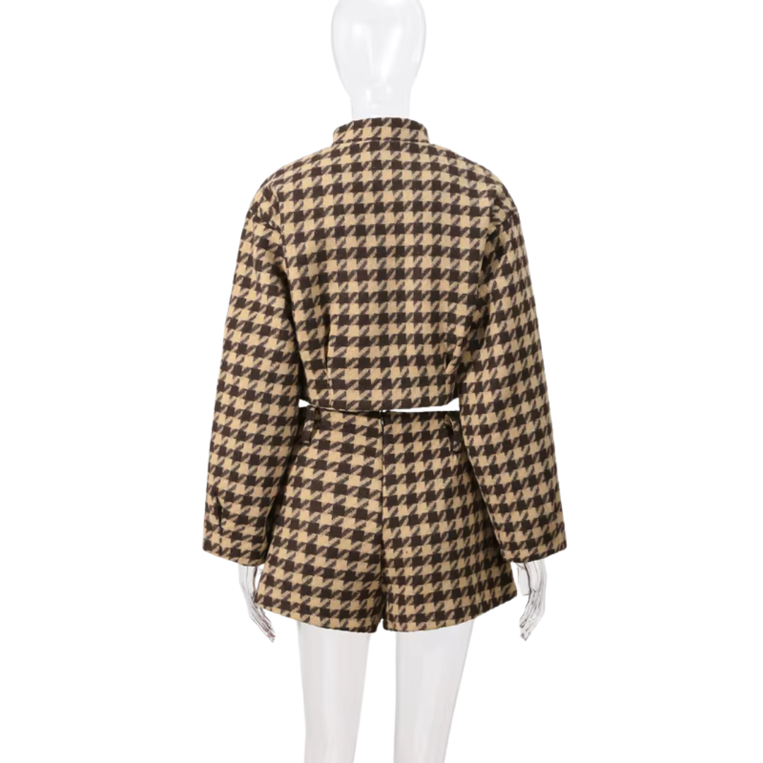 Power Move Plaid Set – Zweiteiliges Hahnentritt-Set mit Boxy Jacket und High-Waist-Shorts